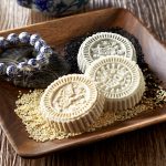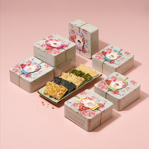 A crunchy and chewy snack of maltose crisps, available in white sesame, black sesame, peanut and rice, peanut and pumpkin matcha flavours.