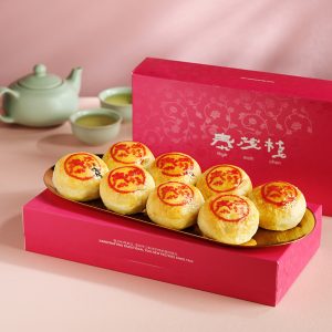 Pastry skin baked to golden perfection, paired with a salted egg yolk centre.